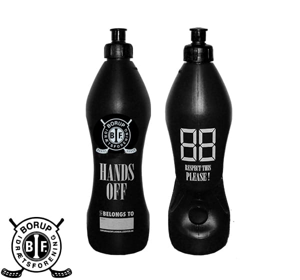 På drikkedunken er der plads til at skrive sit eget navn og nummer, så man aldrig er i tvivl om hvems drikkedunk der ligger i beholderen. Der er også mulighed for at få påsat klubbens logo på drikkedunken.