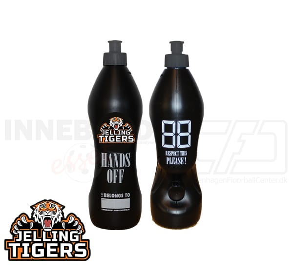 På drikkedunken er der plads til at skrive sit eget navn og nummer, så man aldrig er i tvivl om hvems drikkedunk der ligger i beholderen.