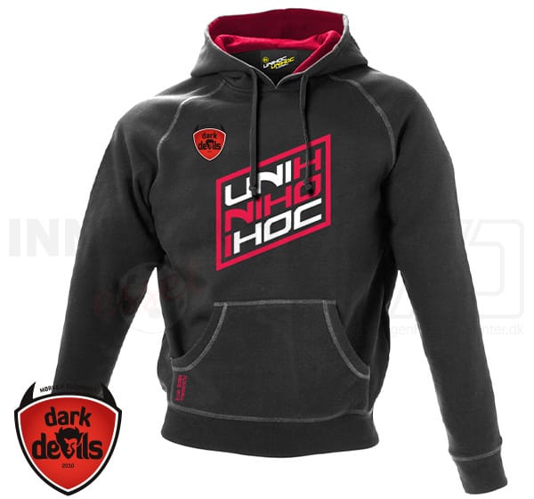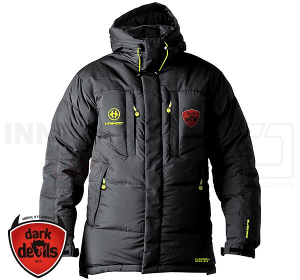 Jakke har 4 lynlåslommer fortil, Unihoc logo på højre bryst og Dark Devils på venstre.