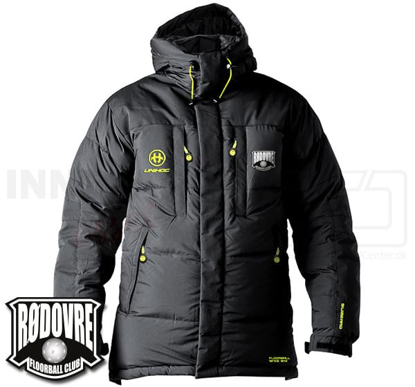 Jakke har 4 lynlåslommer fortil, Unihoc logo på højre bryst og Rødovre FC på venstre.